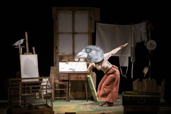Drogheria Rebelot is a theatre company born from the meeting of Miriam Costamagna, Andrea Lopez Nunes, and Andrea Rizzo at the Nico Pepe Academy of Dramatic Art in Udine. The show “Prendere il volo” ("Taking Flight") is based on the book of the same name by Marina Marinelli and Silvia Molinari, published by Topipittori (2020), and is produced by the TRG Foundation of Turin.